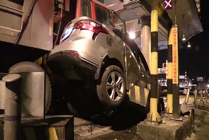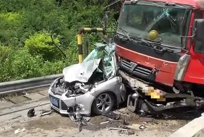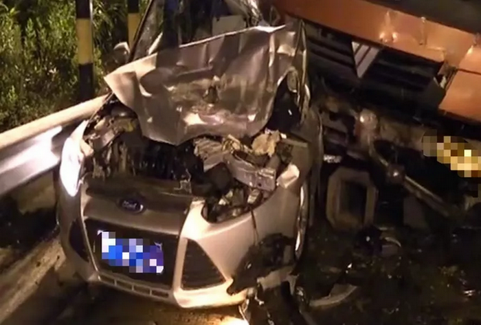 前段时间在梅州城西高速路一收费站处,一辆银色福特轿车被一辆大货车强力撞击至防护栏,那叫一个惨,福特车看起来都快报废了,心疼!!!