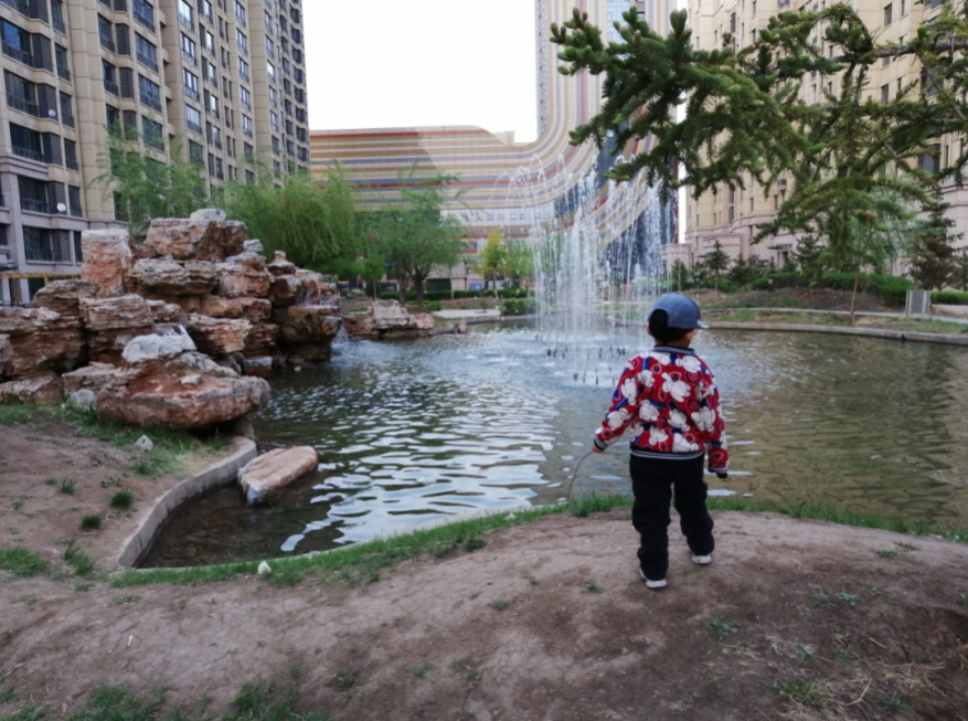 到了姥姥家小区,正好喷泉开了,还是天暖和好,时美景美。