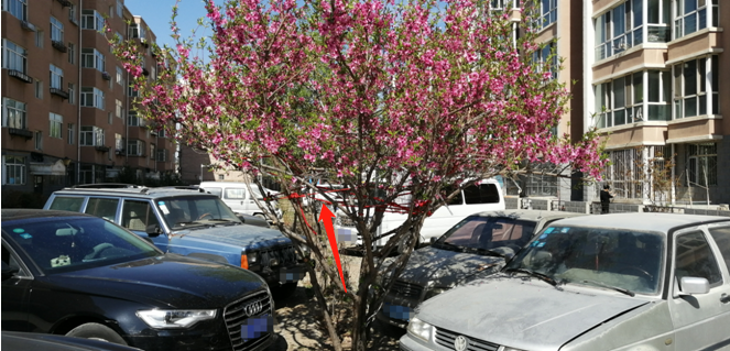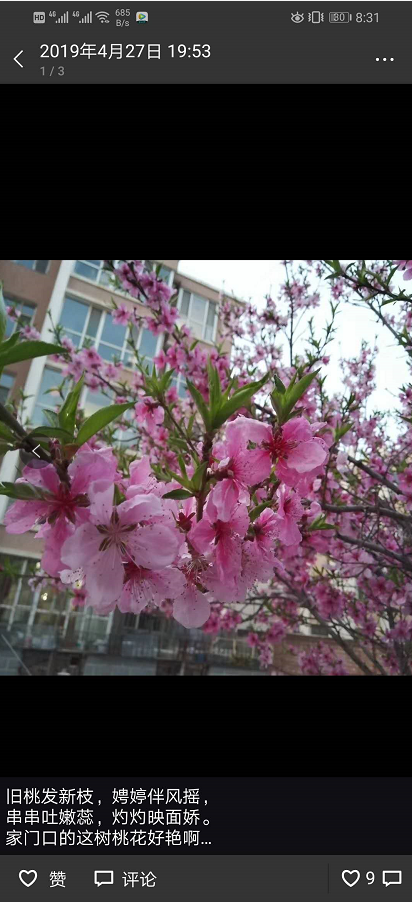 小区院子里有一颗桃树,今年的花开的特别艳,粉嘟嘟红彤彤的,真是一个喜庆的好兆头。为此我还有感而发,吟了一首诗!