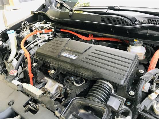 来看发动机舱,这是它跟普通燃油版车型最本质的区别了,虽然看上去有些乱,但每条线路都很清晰,布局非常合理,完全不用担心质量问题,本田要是连这点实力都没有,CRV也不会卖的这么火。