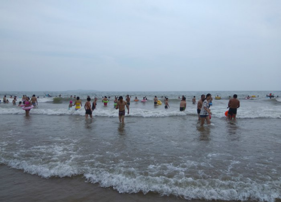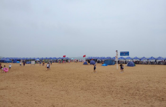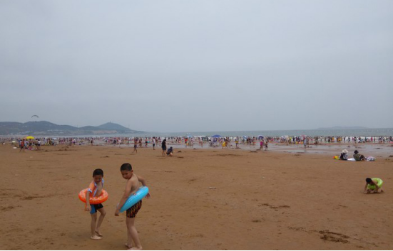 天气不好不坏吧,不会那么晒了,海边的细沙很柔软,有个好听的名字:金沙滩,要是白色的会叫银滩了吧。