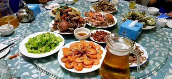 外面找的餐厅,海边什么都缺,就是不缺海鲜。被饥肠辘辘的我们全部消灭。