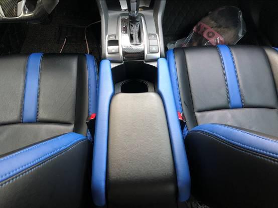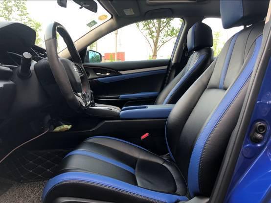 座椅我加了天蓝色的边线,看上去整个车内都亮堂了,而且还显得很年轻,感兴趣的老铁还可以试试火红色,那个效果也挺好。