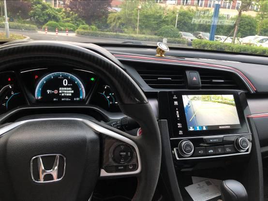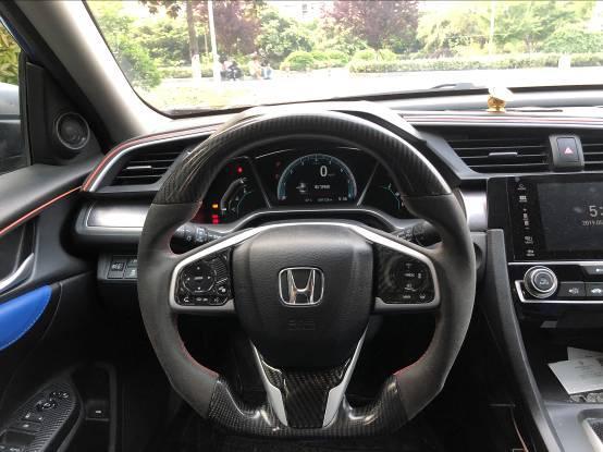 思域的内饰整个很简洁,看上去干净利落,所以我没做什么大的改动,就是给方向盘和车窗按键加了碳纤维。