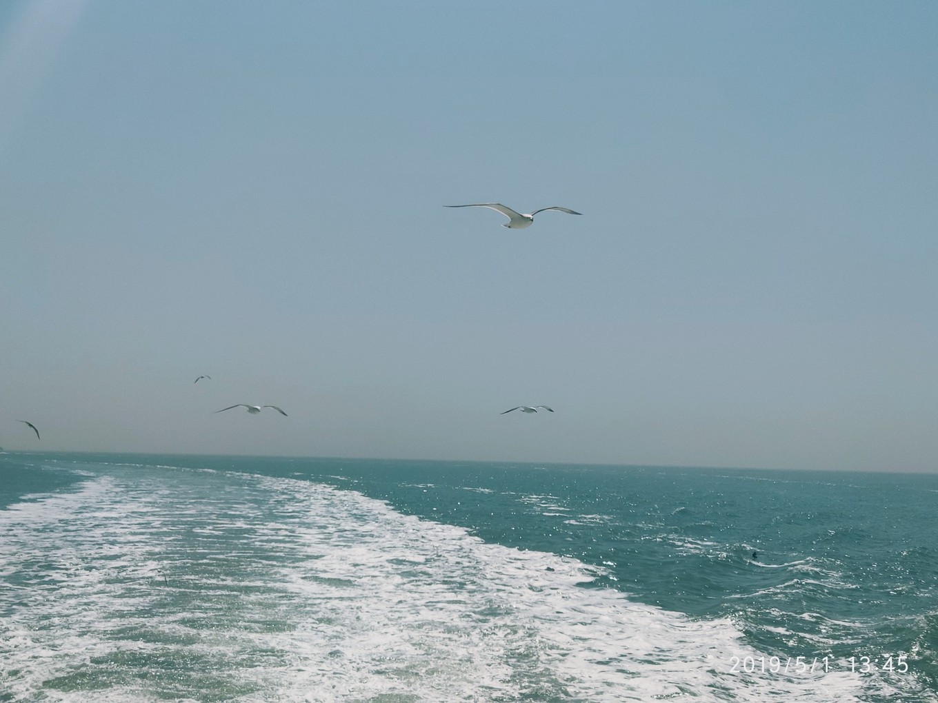 海上浪起来~~一路都有追赶船只的海鸥,成仙的路上呵