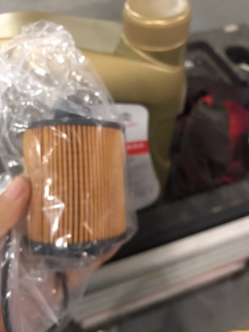 最上面那个,我车上拆下来的机滤。首次保养,放出来的旧机油,拆下来的旧机滤,都蛮脏