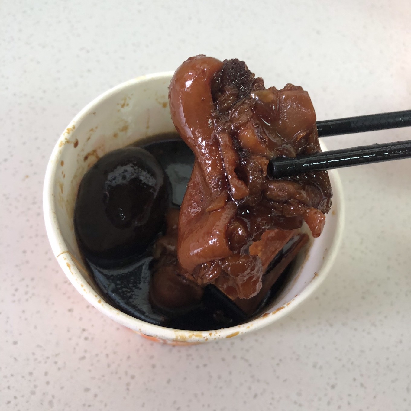 阿婆牛杂店:猪脚姜 。猪脚很入味,姜味很浓,非常好吃,但是鸡蛋硬了点,口感不是太好。还是比较推荐的。看墙上的海报,这家店是从小摊起步,一步一步做成现在的店面的。我们也打算吃牛杂,但事先已经决定了打卡另外一家牛杂店,所以没有吃这家。