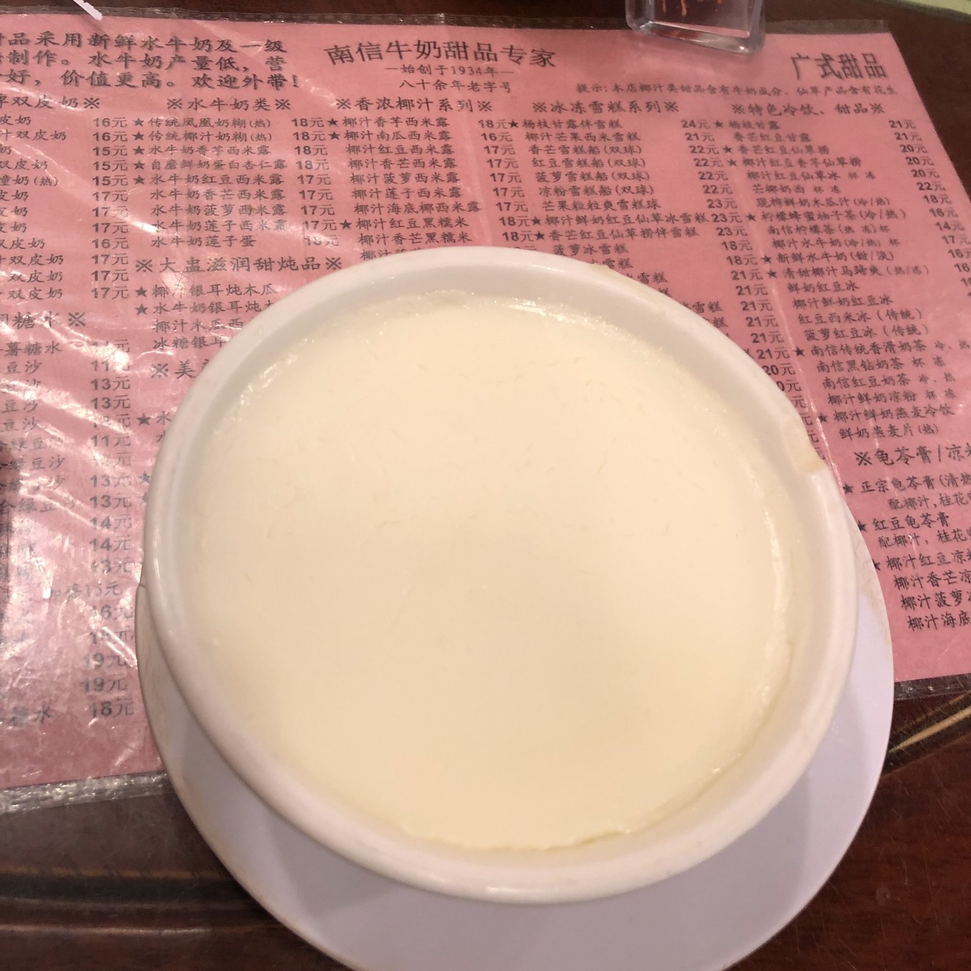 南信甜品店:离上下九不远,人很多,我们点了一份双皮奶和一份姜汁番薯糖水。