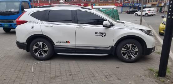 我给车身侧面搞了一些拉花,没有那么单调了。另外还自己单独加装了脚踏板,下雨天的时候相当好用,CRV的离地间隙还是挺高的,通过性好但也容易弄脏裤子,有它以后就会好的多。