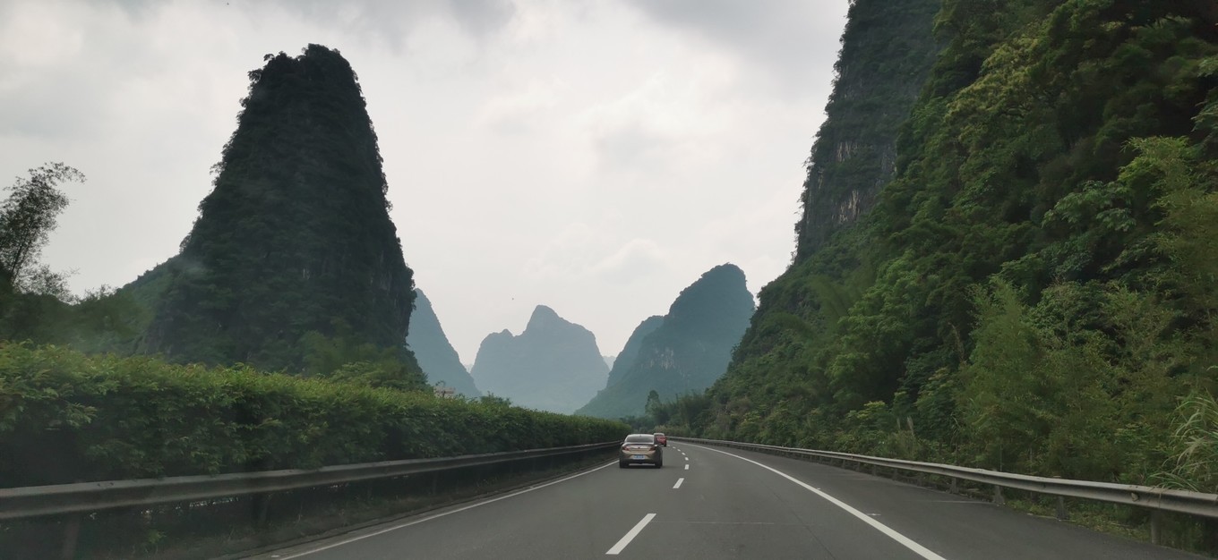 5.12,从黄姚古镇出来,开车就直往钟山水墨画廊,行程40多公里。沿路一座座小山犹如春笋般起伏,美景象画卷不断的在你眼前展现。