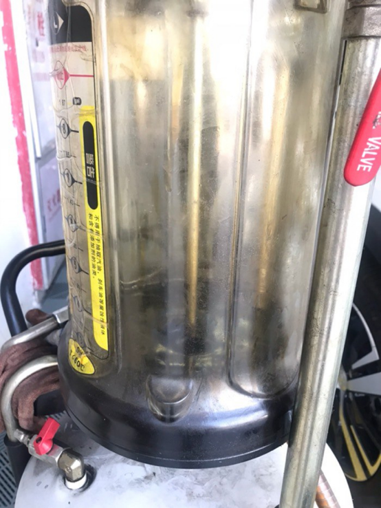 6、放机油,店里采用的是吸出机油的方法,这样就不用升高底盘来放机油。