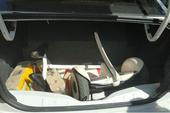 气罐子一装,还剩了不小的空间,行李箱是随便放得下。我车已被平衡车占据