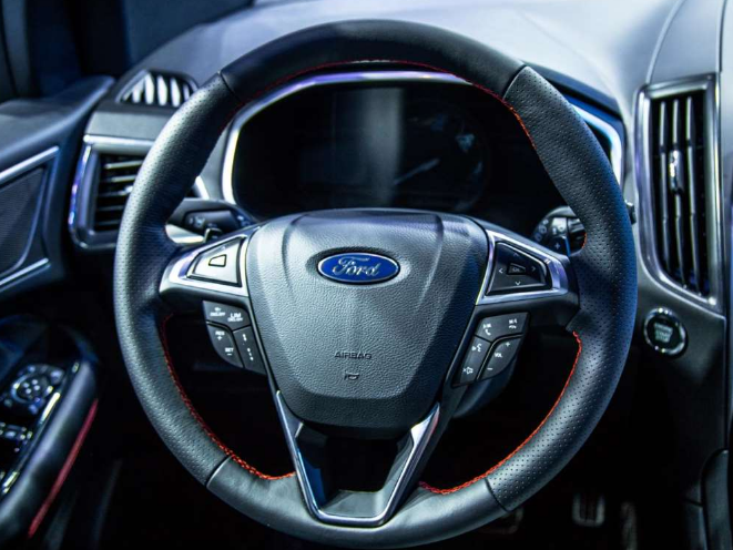 如果说对于新锐界ST-Line是“始于颜值”,那么看完内饰,我的喜爱真的变成了“陷于内饰”。特别是这款车最吸睛的部分,是搭载了 12.8英寸的中控大屏,不仅大,关键是提升了整车的科技感,很前卫。