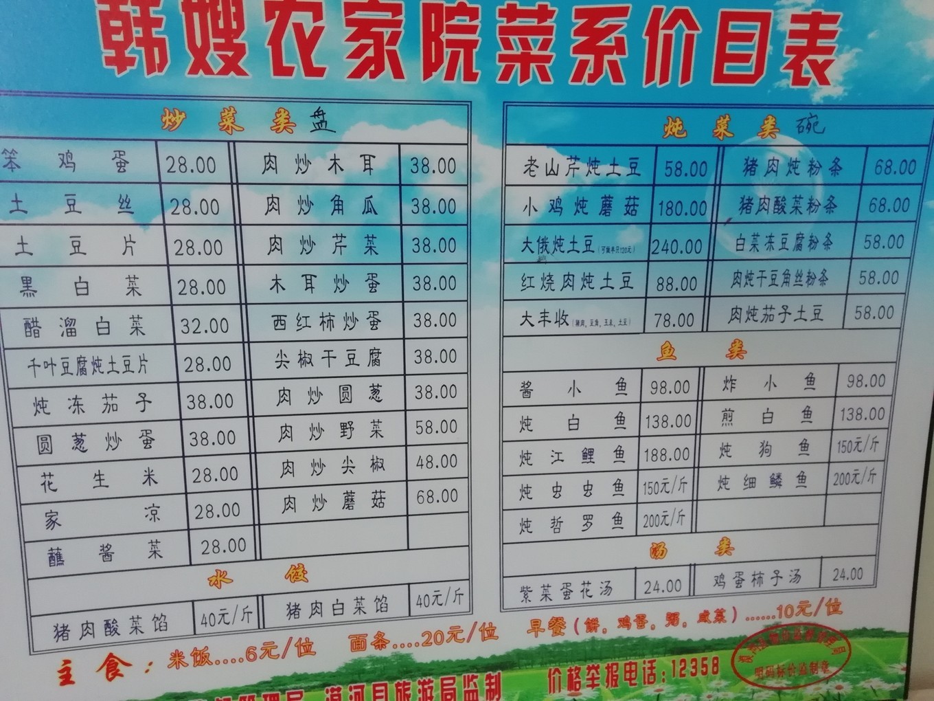 全漠河农家乐统一价目表