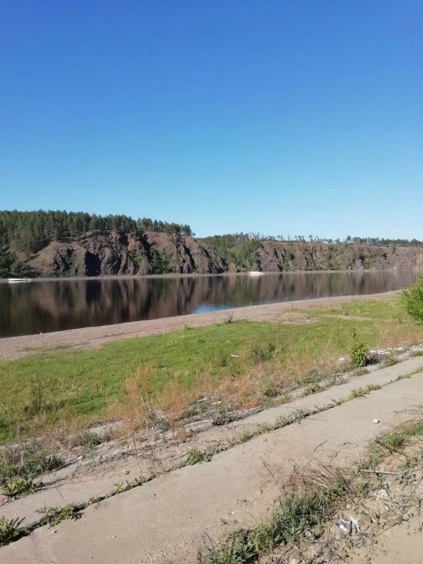 江对岸就是俄罗斯,水岸边的白色是还未融化的冰块