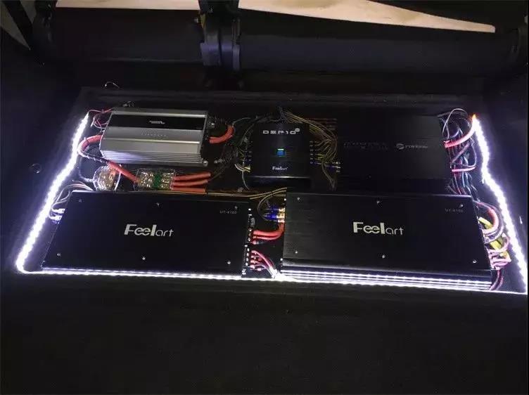功放选择两台芬朗乌托邦旗舰系列UT-4100四路功放和两台单路功放,音频处理器选择同样是乌托邦旗舰系列的DSP10Pro,并制作相关尾箱工艺,以便能更好的保护器材和节省空间。
