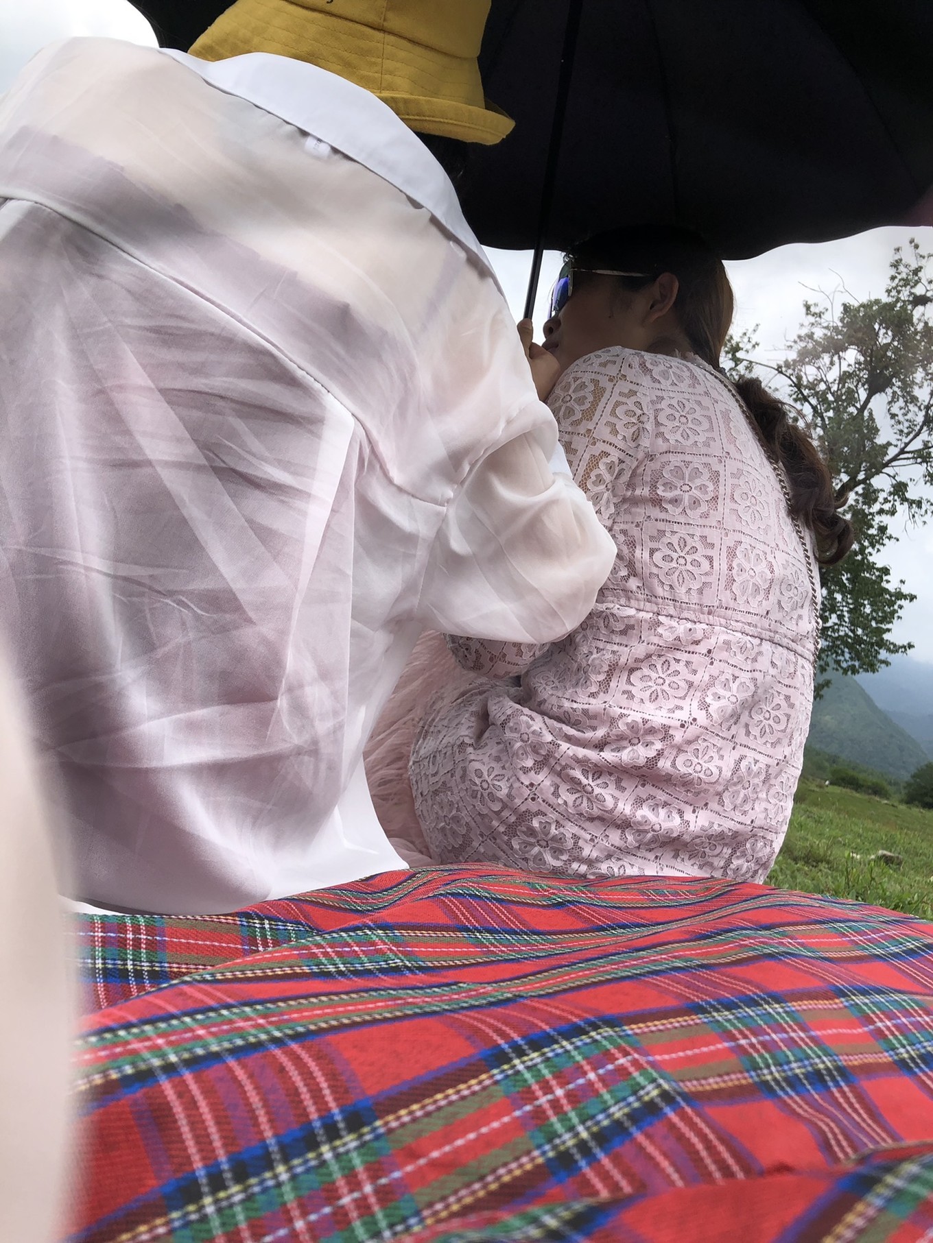 这是我们带的草垫子,一片大草地。这个孟获城分两个景区,草甸和红石滩。到了景区,车子进入是20元一车,然后到了景区里面,收20元的观光车费用。因为是没有开发出来,所以什么都很便宜的。我们坐车观光车,超刺激。建议坐最后一排,在路上会看到那种很多的原始森林,还是很嗨的……