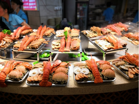 步行街有个小吃广场,一眼望去都这样的红红火火。午餐、晚餐间隔不远,但还是来吃了