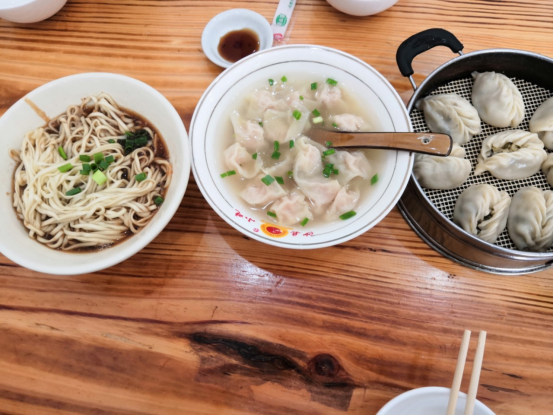 早餐在沙县小吃,拌面、肠粉、小馄饨、蒸饺还有煎饺,除了肠粉有点咸,其他还是一样的好吃。