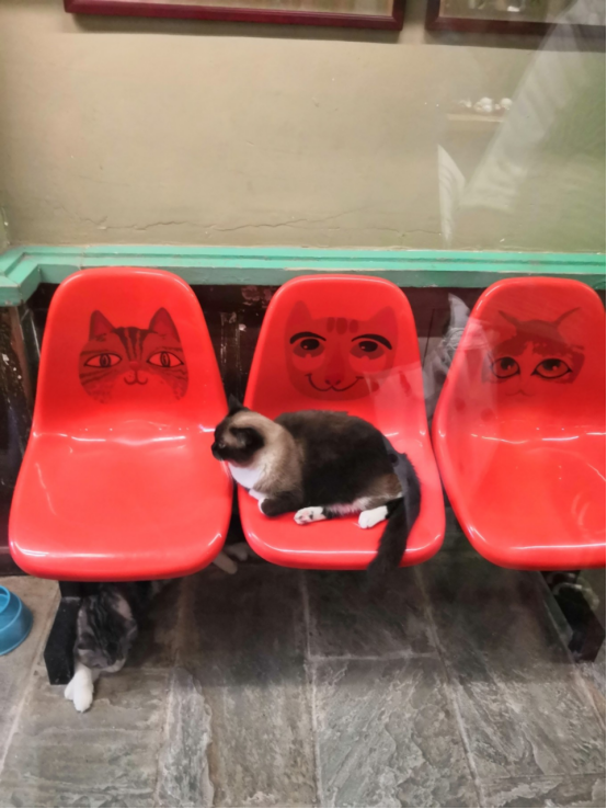 这家墙面上的猫咪画倒是生动可以~