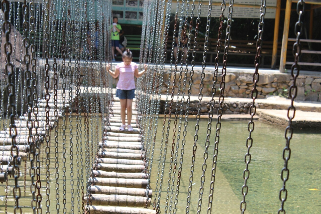 早上,我们先去了酒店的手工坊,做了石头画,再去领了一颗大白菜去喂孔雀和大白鹅(大白鹅需乘坐脚踏船喂)。喂好后,我们又去了游泳池,热,需要“冰镇”一下