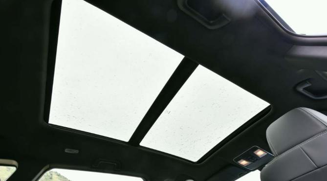 坐在后排,抬头一看,全景天窗这个设计真的很棒!让人感到空间一下子变宽敞了,没有压抑感,非常666。