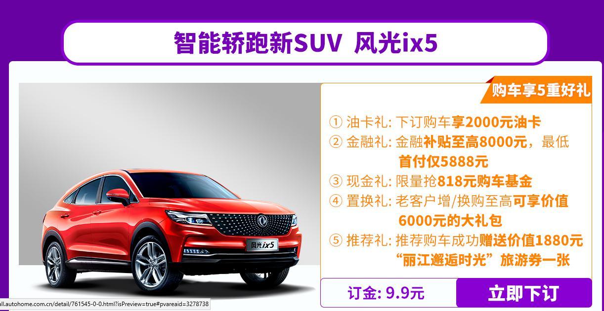 这次我看到风光ix5搞活动我可激动了,我仔细看了下,这次购买风光ix5有很多优惠,说不定我可以趁着这个活动把它拿下,也算是实现了我一个心愿!