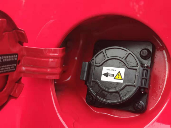 这是给它充电的地方,前面是支持快速充电的,后面就是充电桩的连接口,现在高速上面都可以充电了,时间还短不用浪费太多时间。