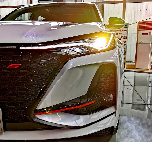 我觉得哈,CS75 PLUS的颜值比F7更加激进,更大的中网霸气十足。点亮后的LED灯和下方的红色装饰条给人的冲击感也特别强烈。