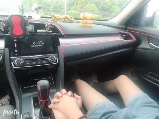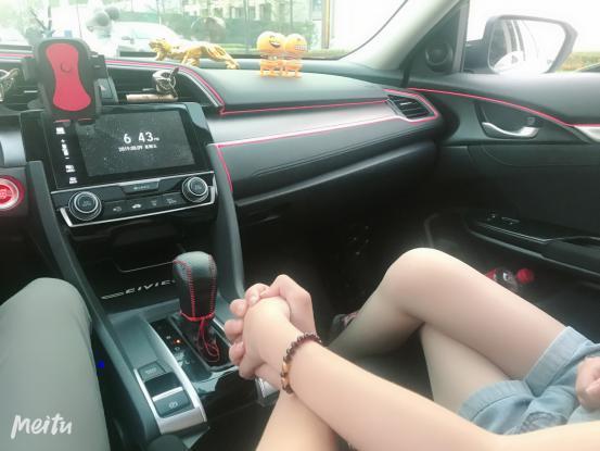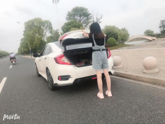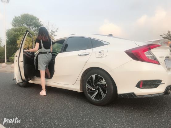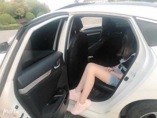 后排也给大家展示一下下,思域这车空间还是可以的,像媳妇这种体型的女生,挤一挤能坐四个。