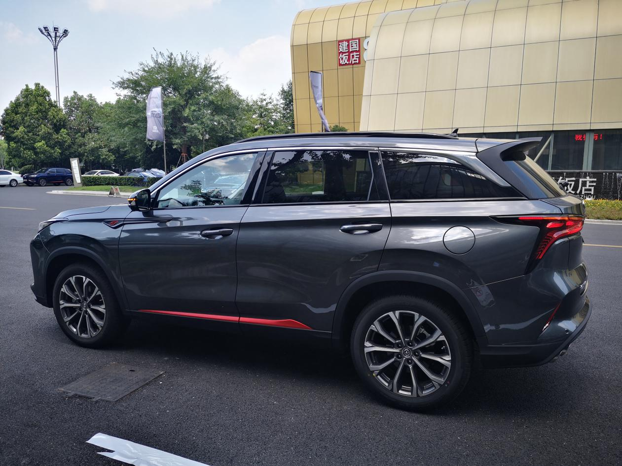 公布售价前,也去了4s店体验了一下真车。CS75 PLUS造型十分运动,前脸和车身都有红色点缀,非常ran情,很有战斗风格。