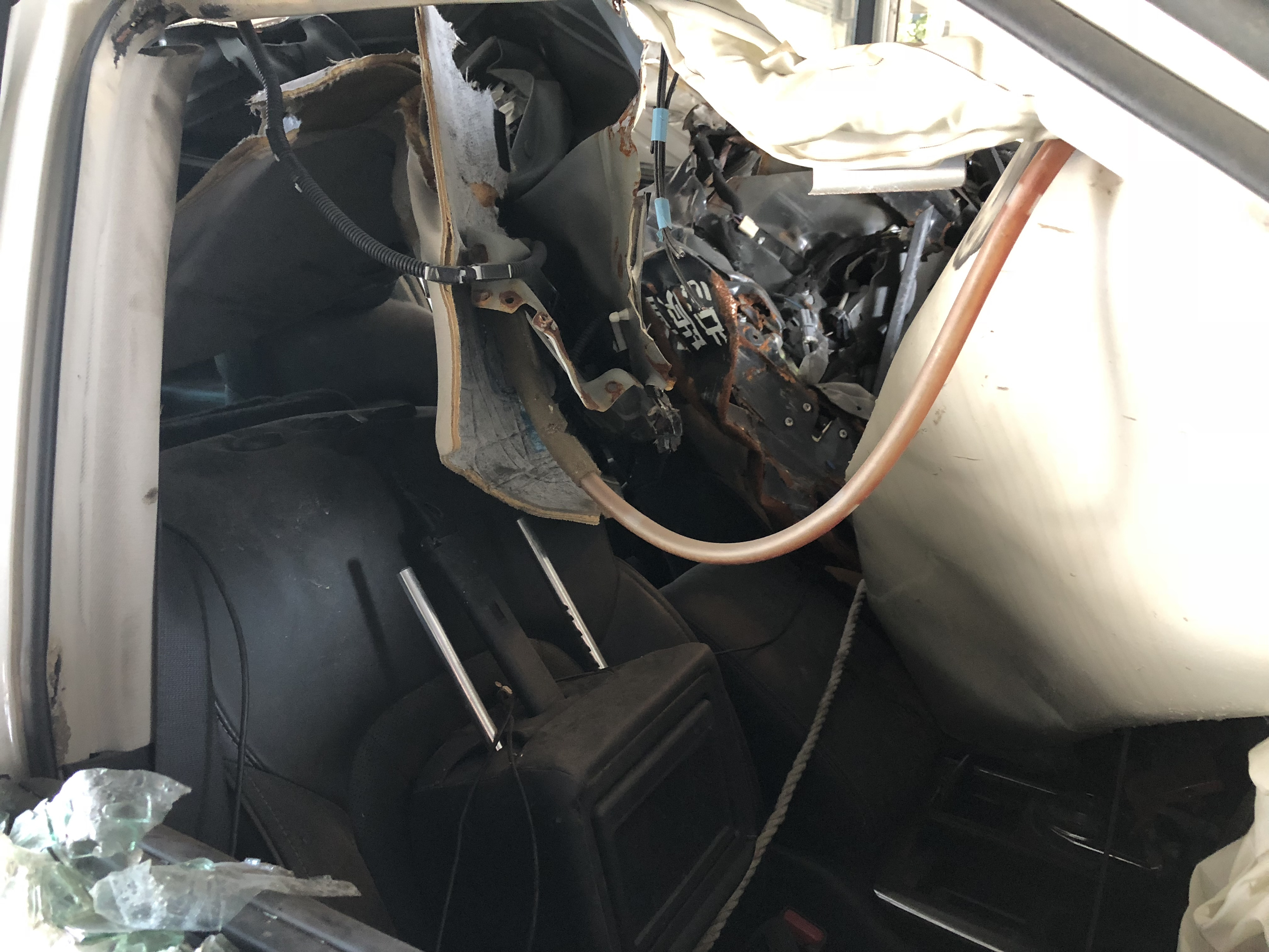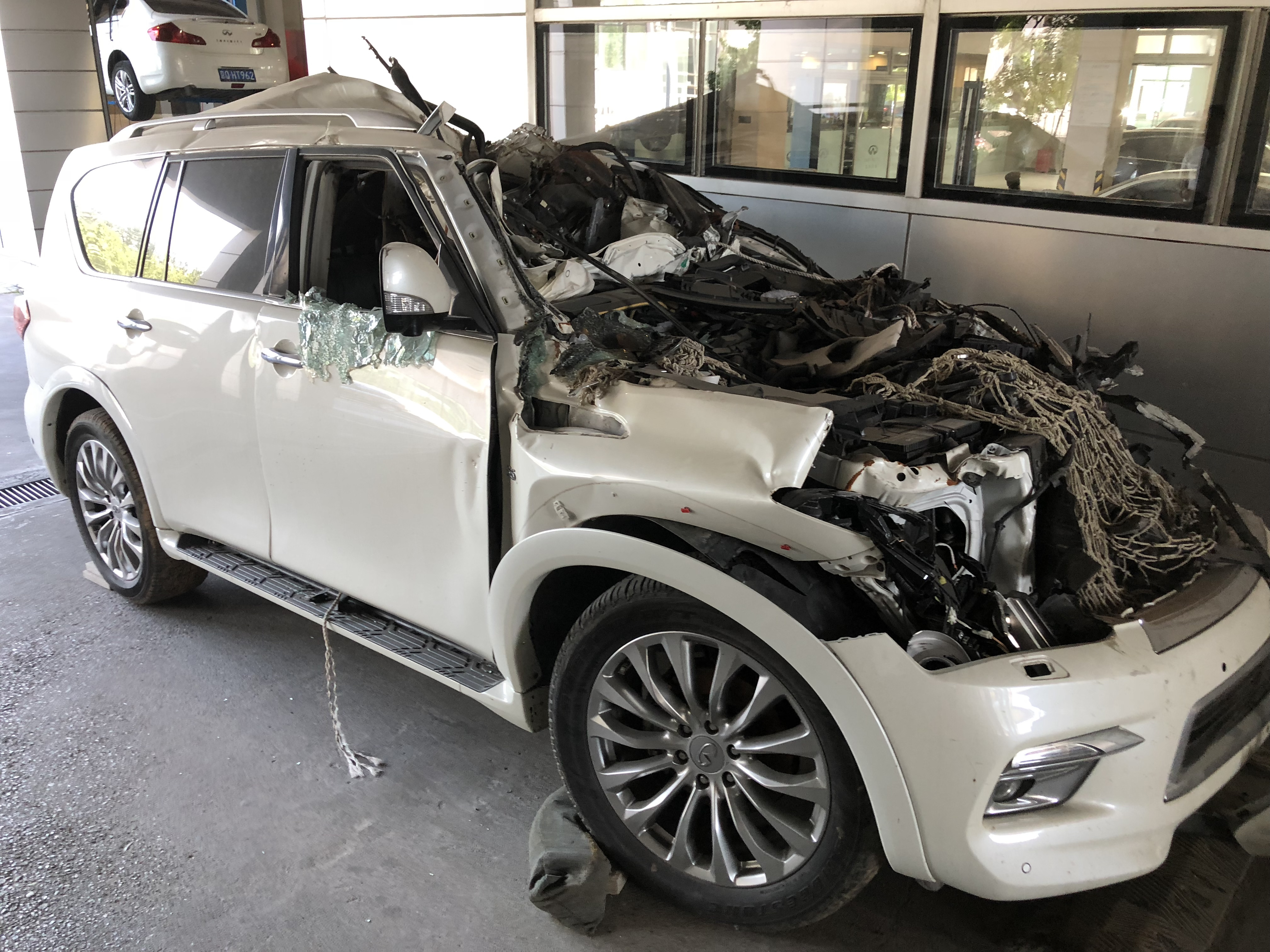高速追尾了大货车,钻进了大货车底下,发动机完全报废了。