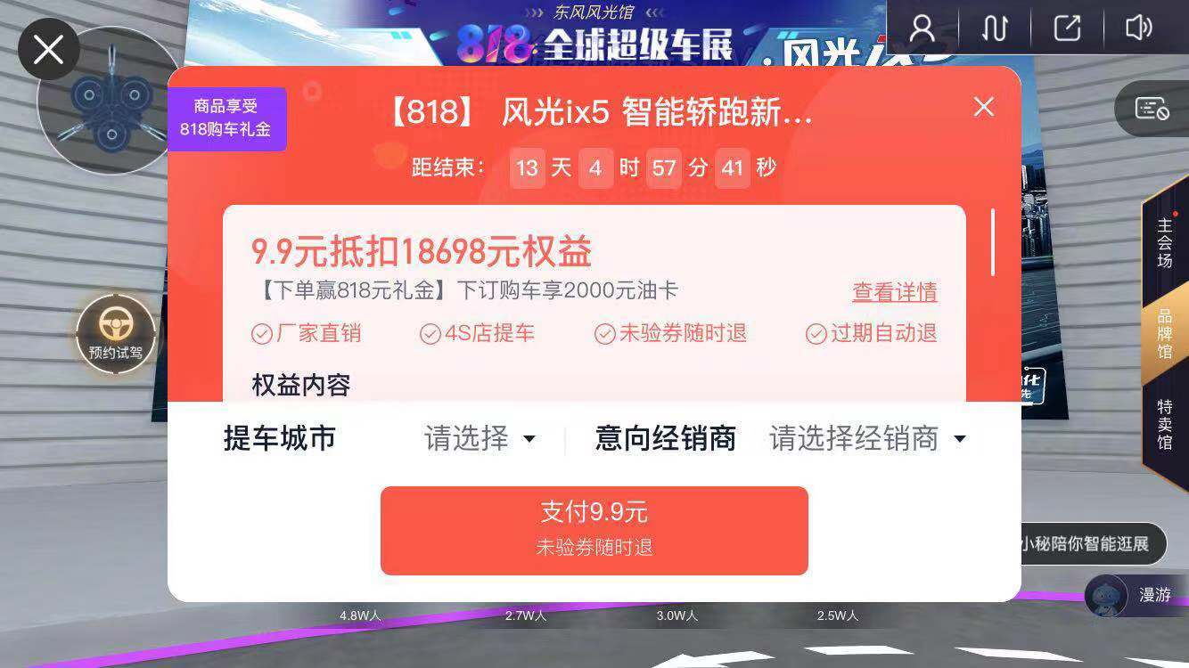 不过,还有其他很多购车优惠,还是很给力的。9.9元享受18698购车优惠,就很诱人。对于想要买车的车友,还是值得参与的。