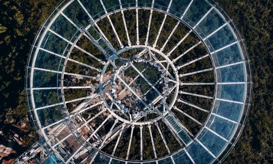 仙岛湖有全球最大的悬挑玻璃平台,宛如天空之城般伫立在青山绿水之上。