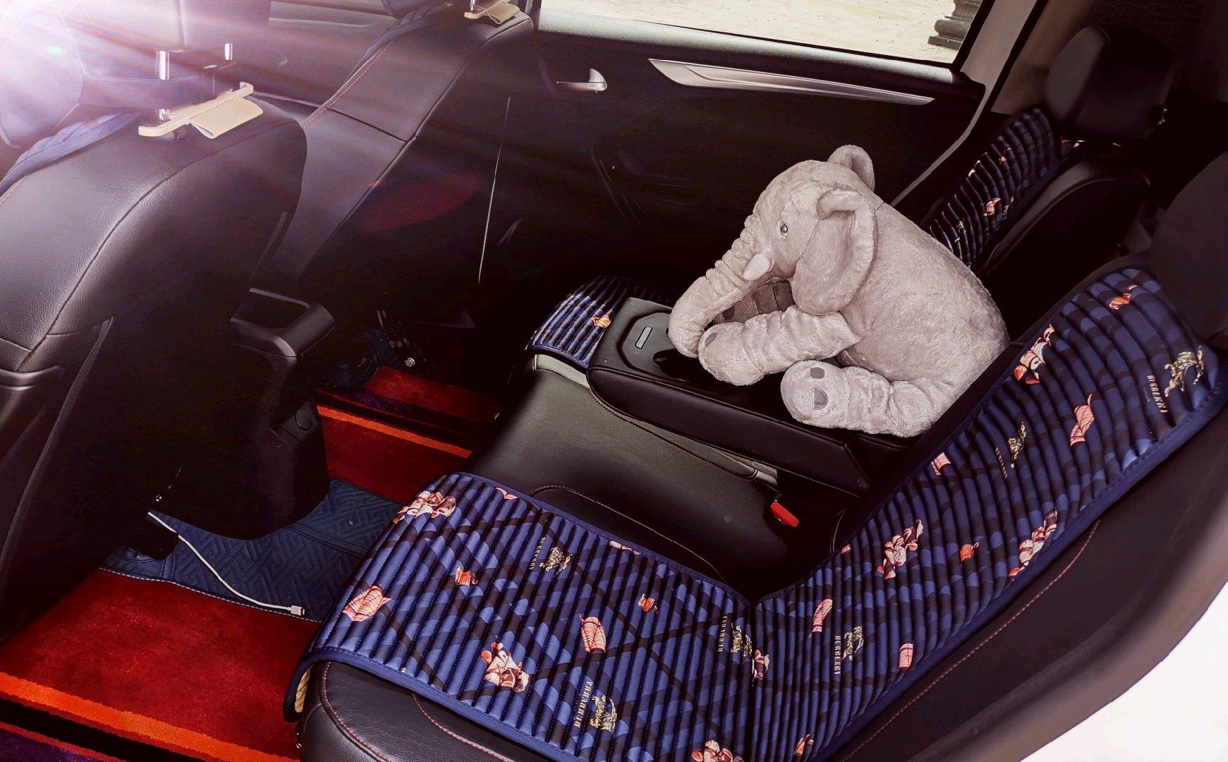 其实改也没什么动作,外观上就是贴几个拉花,搞个黑顶,加一片小尾翼、一片唇。内饰更简单,各方面套子上齐,装了个行车记录仪,就这么简单,就能酷上天