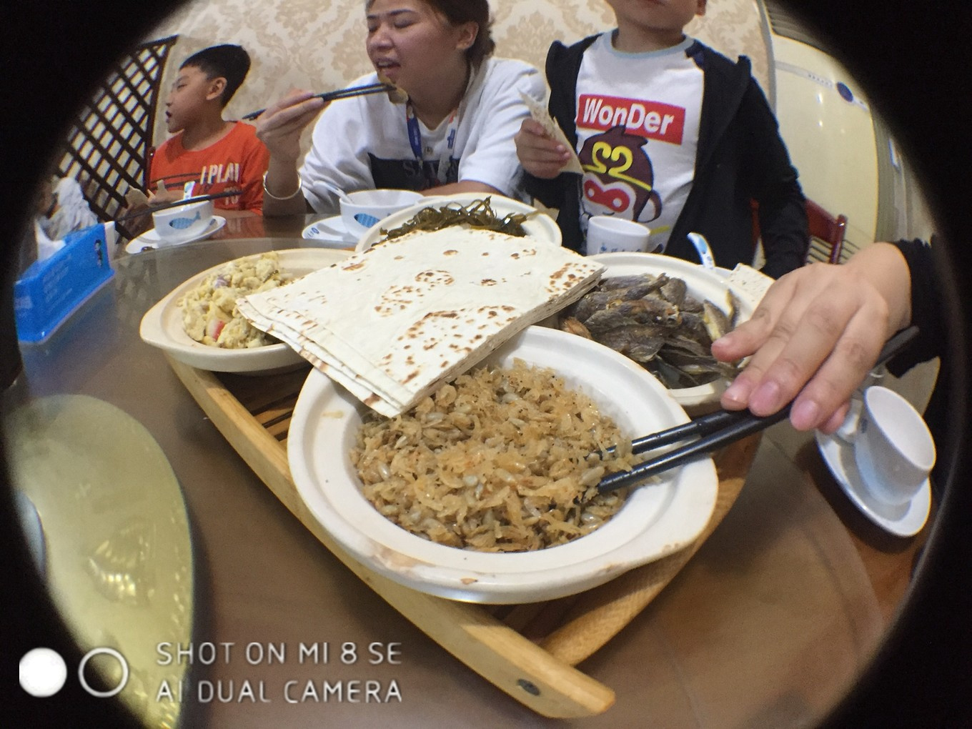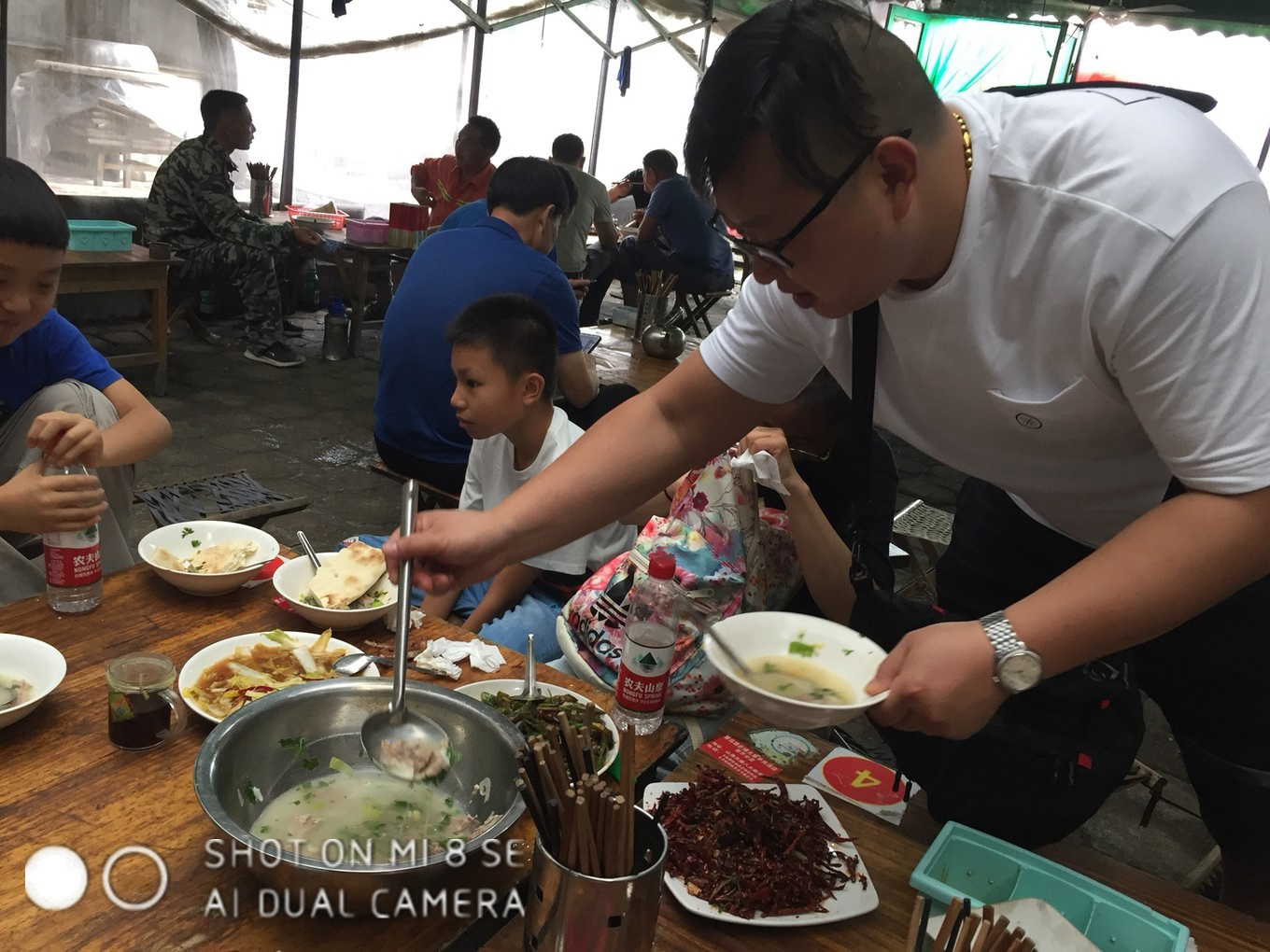 本次旅行的小伙伴们!合照,坐的小马扎挺有意思,本地很多饭店都是这样,环境稍微差了点!