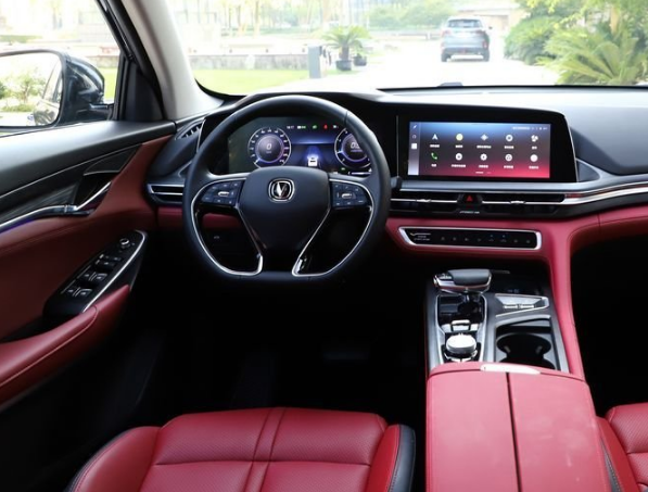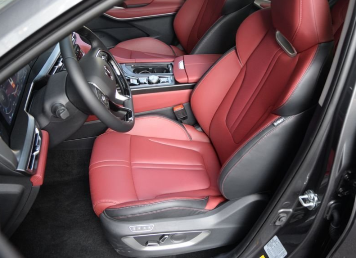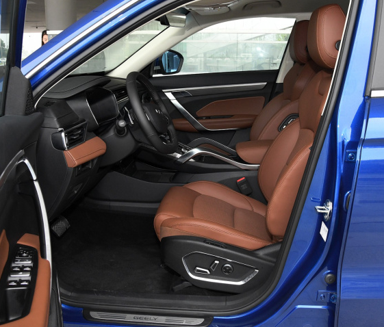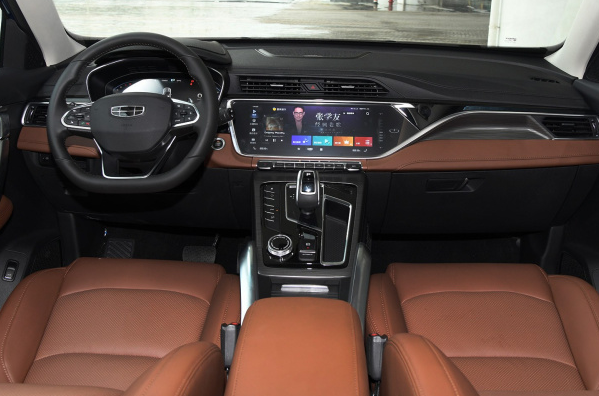 内饰也是同样够档次,整个中控台一块超长的三联屏,极有科技感。然后全车几乎就没有什么实体按键,把科技感进行到底,用料方面也是搪塑、皮质包裹、拉丝工艺的饰板,这些都和博越不相上下。然而这辆车顶配的是蓝鲸2.0T+爱信8at的动力组合,同级车里非常无敌。