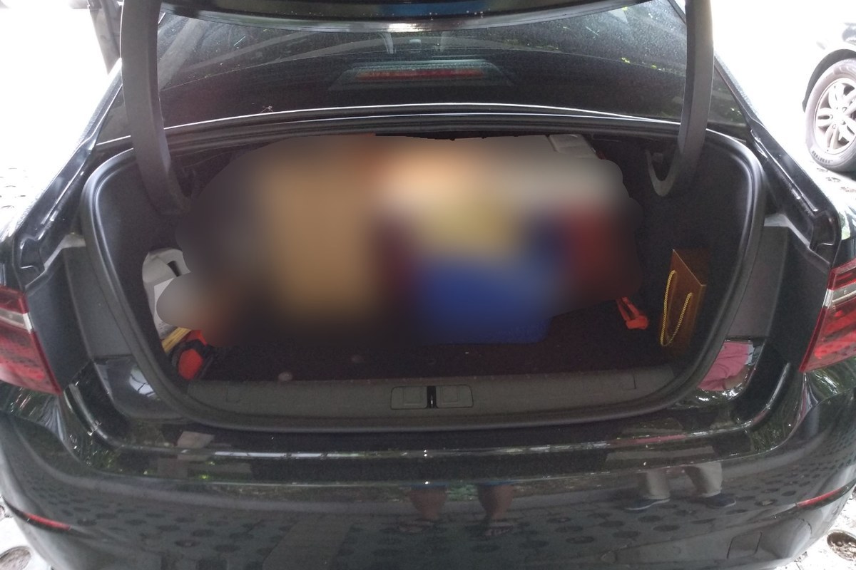 一口大拉杆箱,两个背包、一顶帐蓬,还有锅碗瓢盆这些炊事工具,野游全套装备,一尾箱拉走没得“余孽”