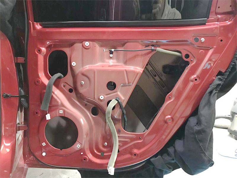 车内饰板拆卸后,必须要进过专业的清理沾污、灰尘,否则会大大影响隔音效果甚至会脱胶(建议专业师傅施工)
