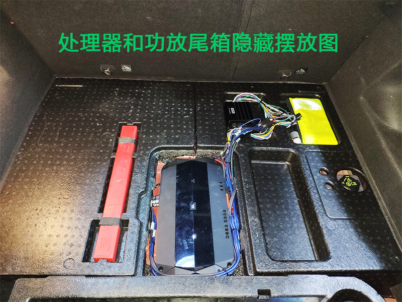 因为车主选用了中国哈曼JBL比较高端的一款喇叭,所需要的功率比较大,所有需要功率放大器进行运作。还需用了音频处理器进行电脑调音,还演唱会原现场效果,保证原汁原味。