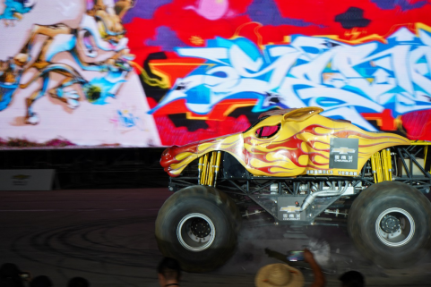 其实,之前的表演,说白了都是为最后这个压轴的“大家伙”所铺垫的哈哈!要知道,这是在国内难得一见的“大脚怪”!虽然压轴的它,出场的时间只有短短几分钟,但它的震慑力还是非常MAX的!让人看着既热血沸腾,又胆战心惊!