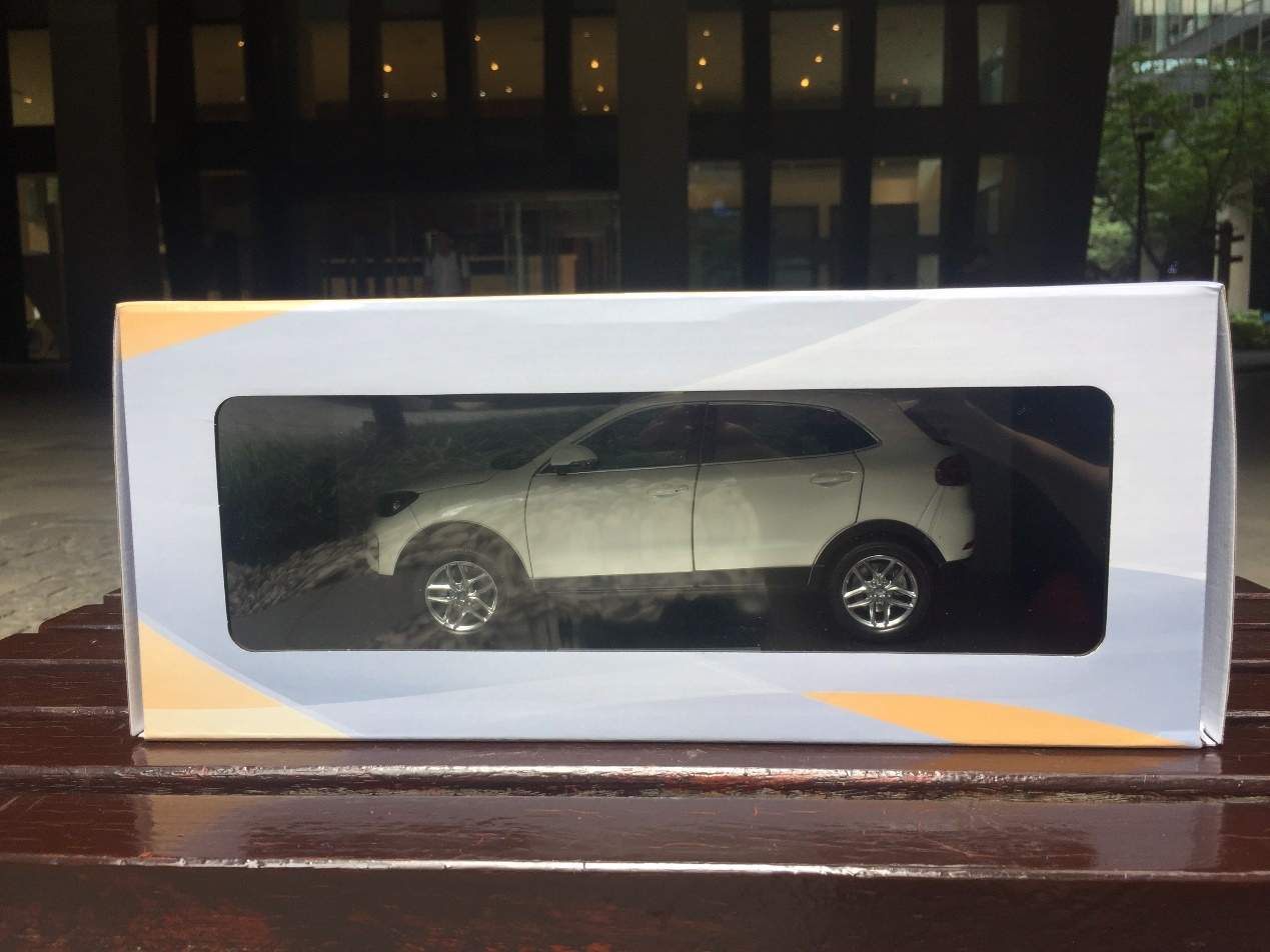 一个月之后,期待已久的车模终于到了。这款车模型号是国机智骏GX5,我上网查询相关资料,原来国机智骏GX5是国机智骏汽车首款高品质SUV车型,外型设计圆润饱满、内饰做工简约干练,像尾灯、尾部造型、轮毂等细节都有浓郁的欧洲设计风格。前格栅、LED前大灯及前雾灯让GX5的前脸极具辨识度。