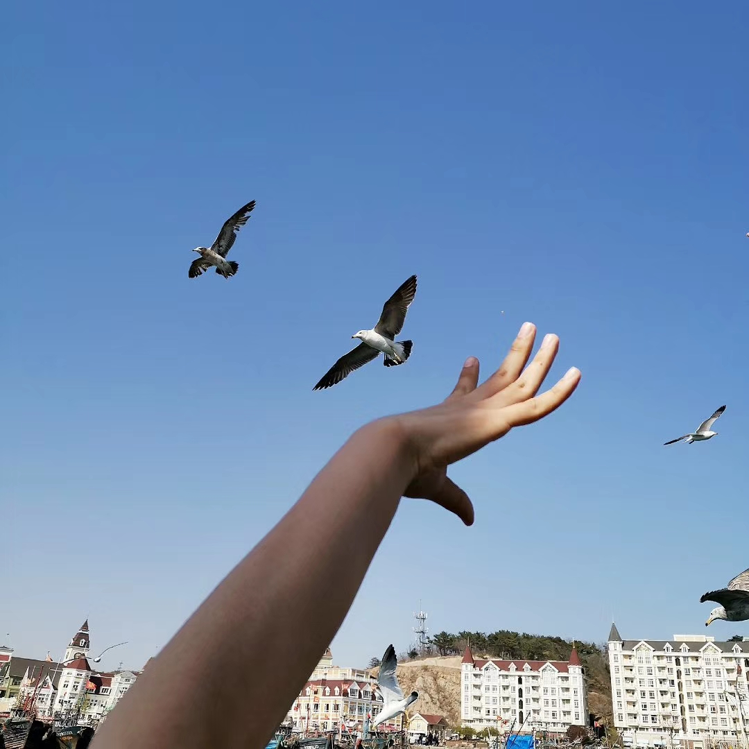 天空都是海鸥,有的飞的很低,仿佛伸手就能捉到。