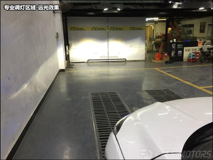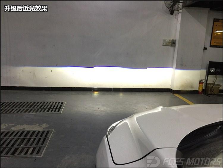 升级后近光效果:效果显而易见,轻松提升3-4倍以上,切割线清晰,照射范围宽广,强大的灯光效果在夜间行驶时一路勇往直前,前方路况一目了然,不用再担心近距离才现象异常而惊慌刹车,有效的避免事故的发生。