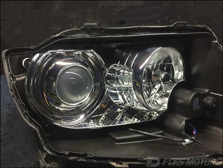 无损开灯,下一步将进行PDKLED双光透镜的定位与安装!透镜安装固定比较复杂,期间还需要手工打磨进行透镜安装定位,同时给透镜做水平仪灯光测试等等,这些项目程序也是改灯最为关键以及复杂的,稍有偏差就影响到升级后灯光效果的完美性,这也是小编为什么一直都建议各位车友一定要找到专业改装店的原因咯~~~