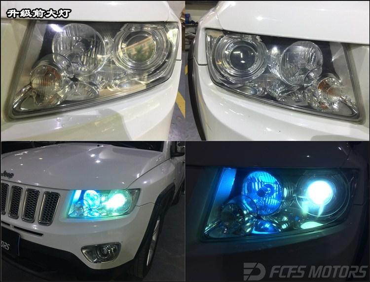 升级前后明显对比,真是没有对比就没有伤害,还是那句话专业的事还是交给我们专业的人来做吧(锋程车改),这样才能一步到位升级,免去不必要的麻烦!至此我们吉普指南者车灯升级之旅就完美告一段落啦,车主看着如此强大的灯光效果满意极了,再也不用为夜行灯光不够亮而烦恼了!