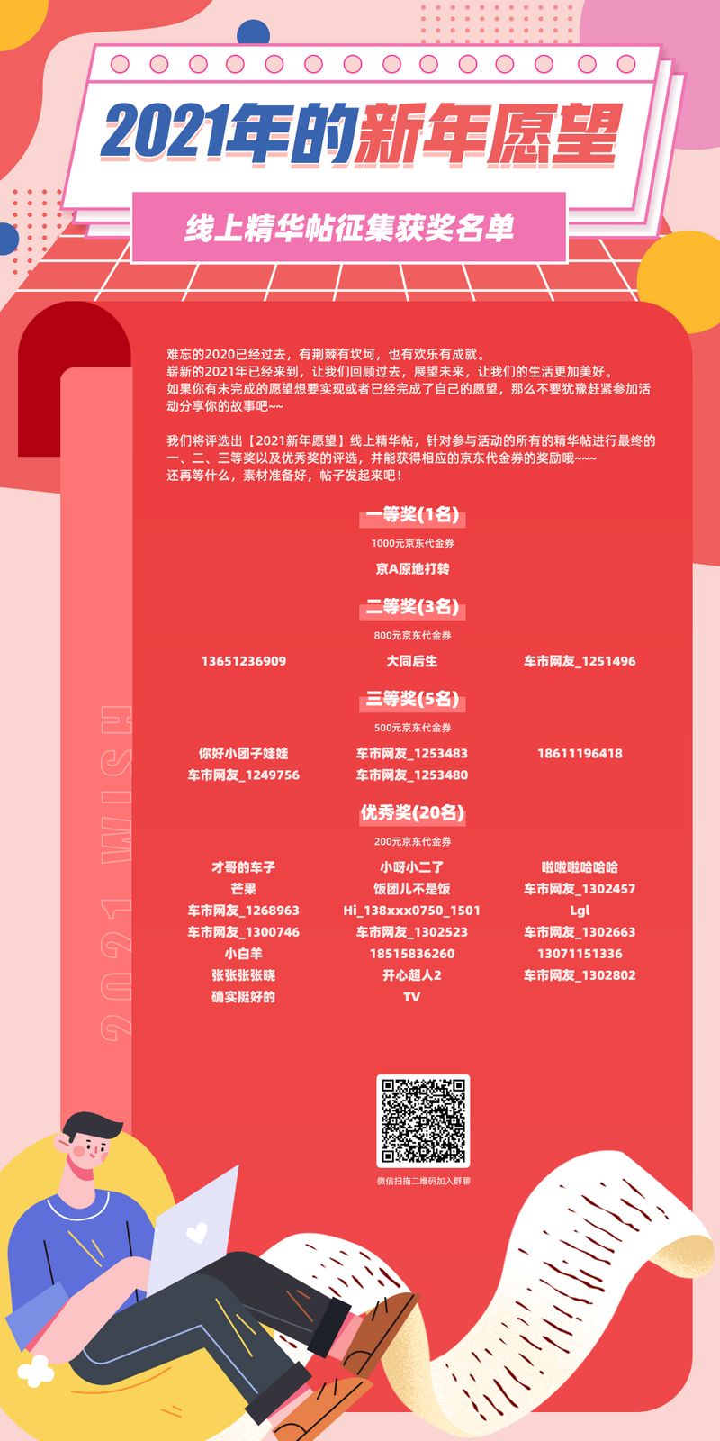 【2021新年愿望】线上精华帖征集赢千元大奖获奖名单