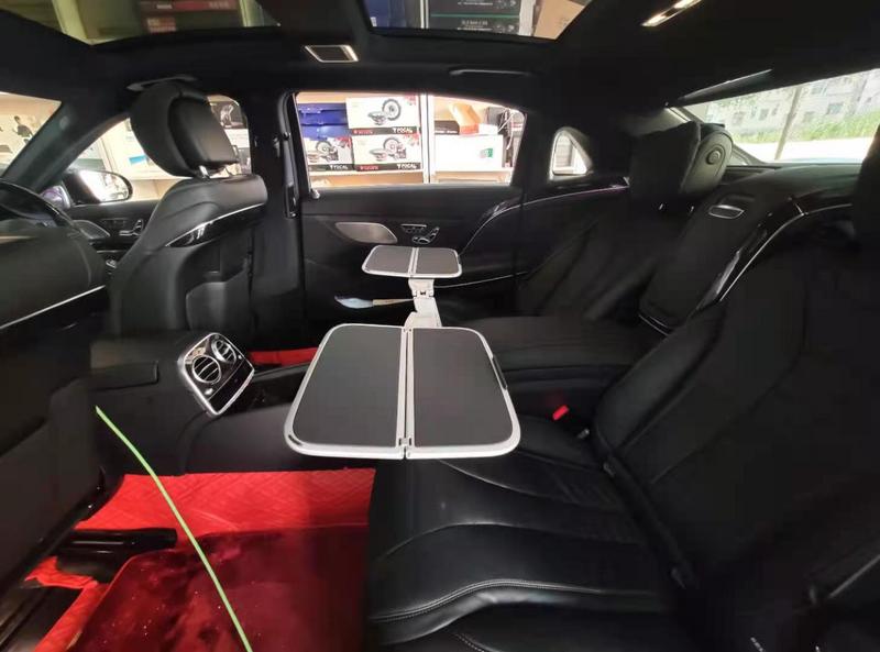 一次成功的洽谈合作少不了协议上的签署,此时可以打开后排的折叠桌板,这种打开桌板的过程极其享受,有一种阻尼感会带来一种十分严谨的感觉,细节方面处理得当无非不是给客户增加好感,不仅如此,桌板也可以承受着笔记本电脑的重量,在车内办公都可以!