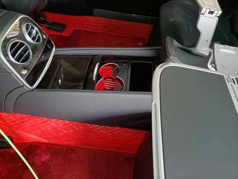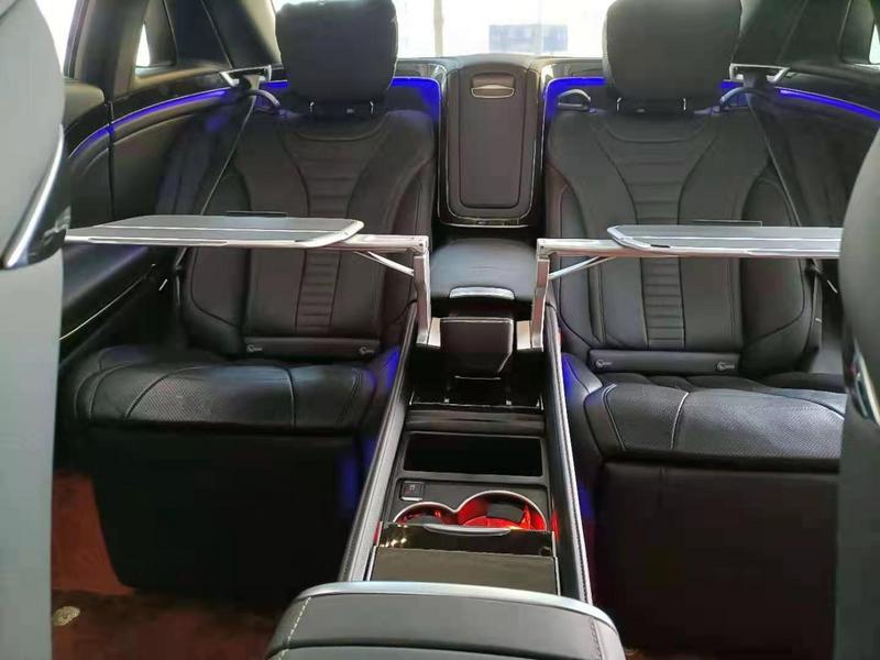 如果你见过迈巴赫S级四座车型实车就应该了解过四座马鞍的功能配置,比如冷热杯架、桌板、无线充等,当然更高级别会配备冰箱,在典藏版上市之后可以说在配件配色方面做出了微微调整,木饰板由原来的多疤胡木换成了高光多疤胡木,内饰的缝线由棕色变成了灰色!这都是改装其中的细节!