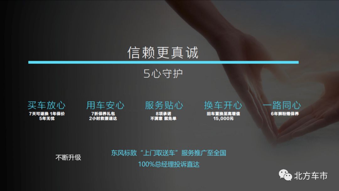 “五心守护行动”可以说涵盖了车主用户在买车、用车等过程中全方位的服务,直面消费者在用车过程中的痛点,免去用户的后顾之忧。在2021年五心守护政策迎来了全新的惠民升级,已发布两项升级行动,一是在“用车安心”中,增设客户关爱基金;二在“服务贴心”中加入“上门取送车”服务,东风标致全国范围内的客户维保车辆,可享受30公里内上门取送车服务,送车免费服务服务范围由试点期间10公里提高至15公里内免费上门取送车,为客户节省时间成本。
